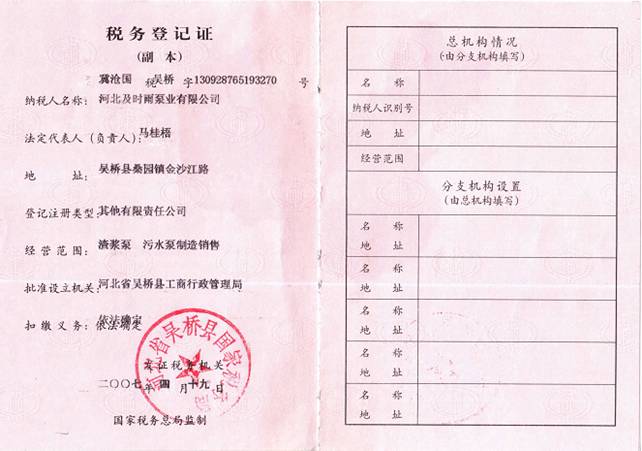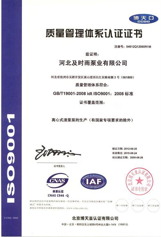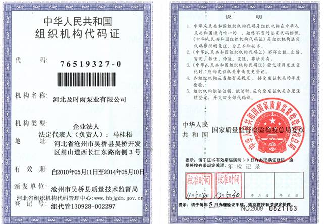 企業(yè)資質-河北及時雨泵業(yè)有限公司
